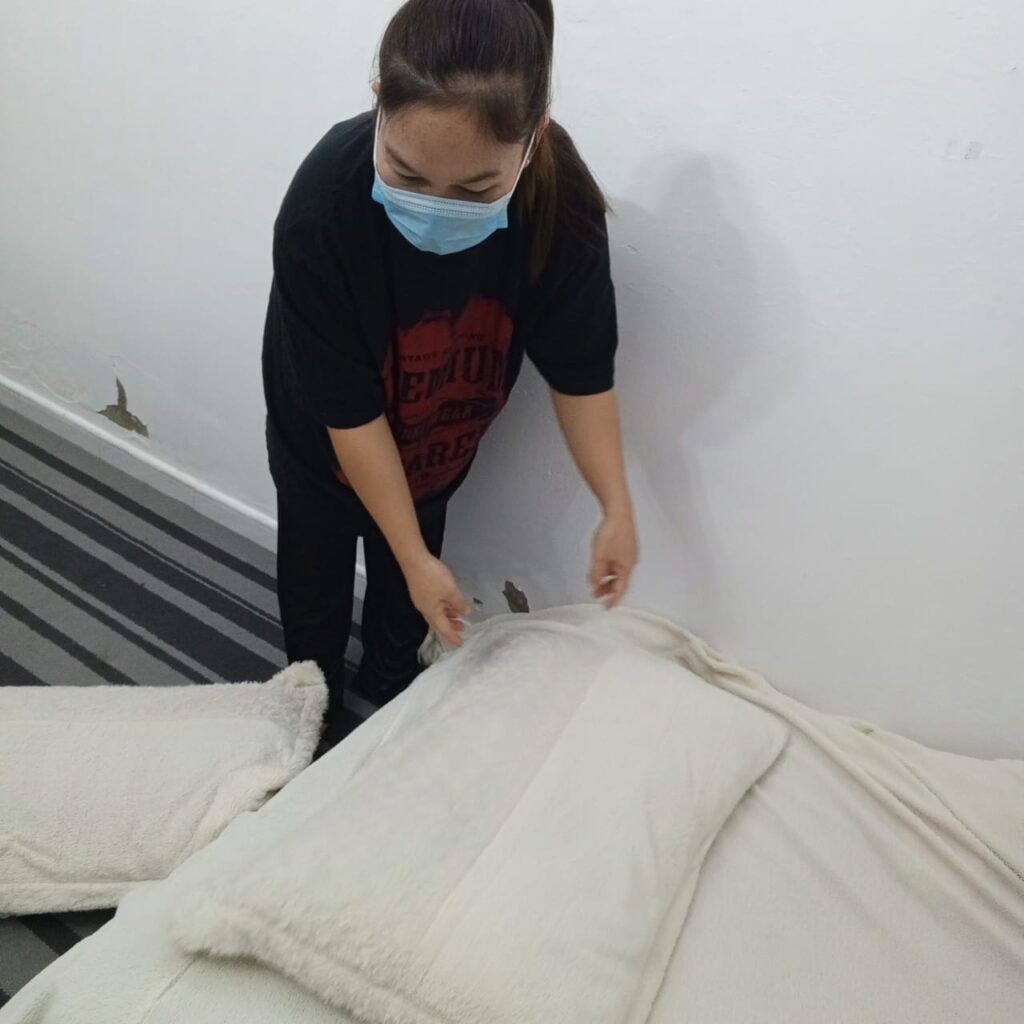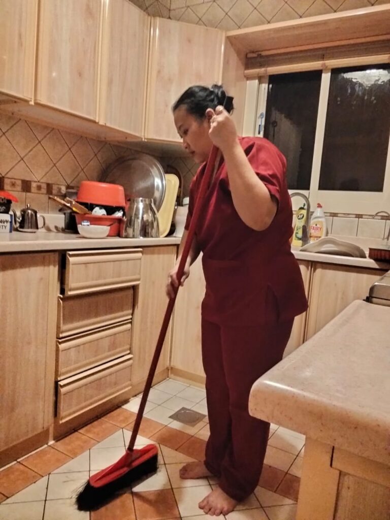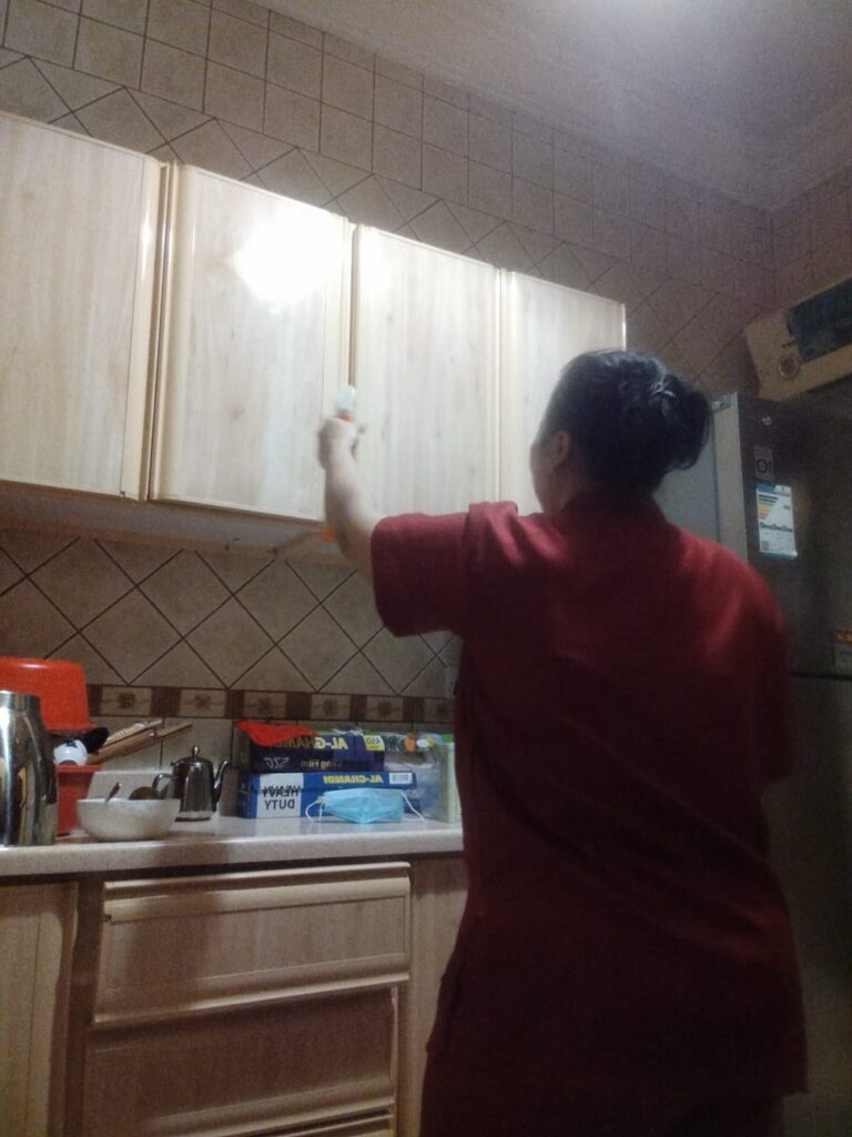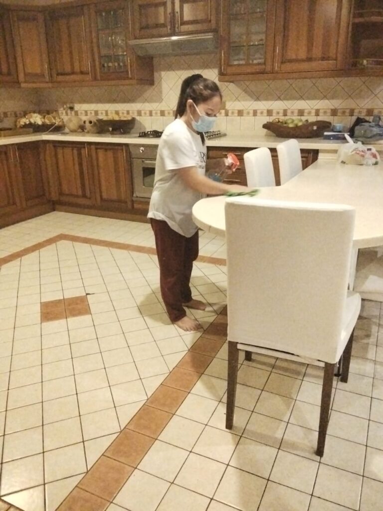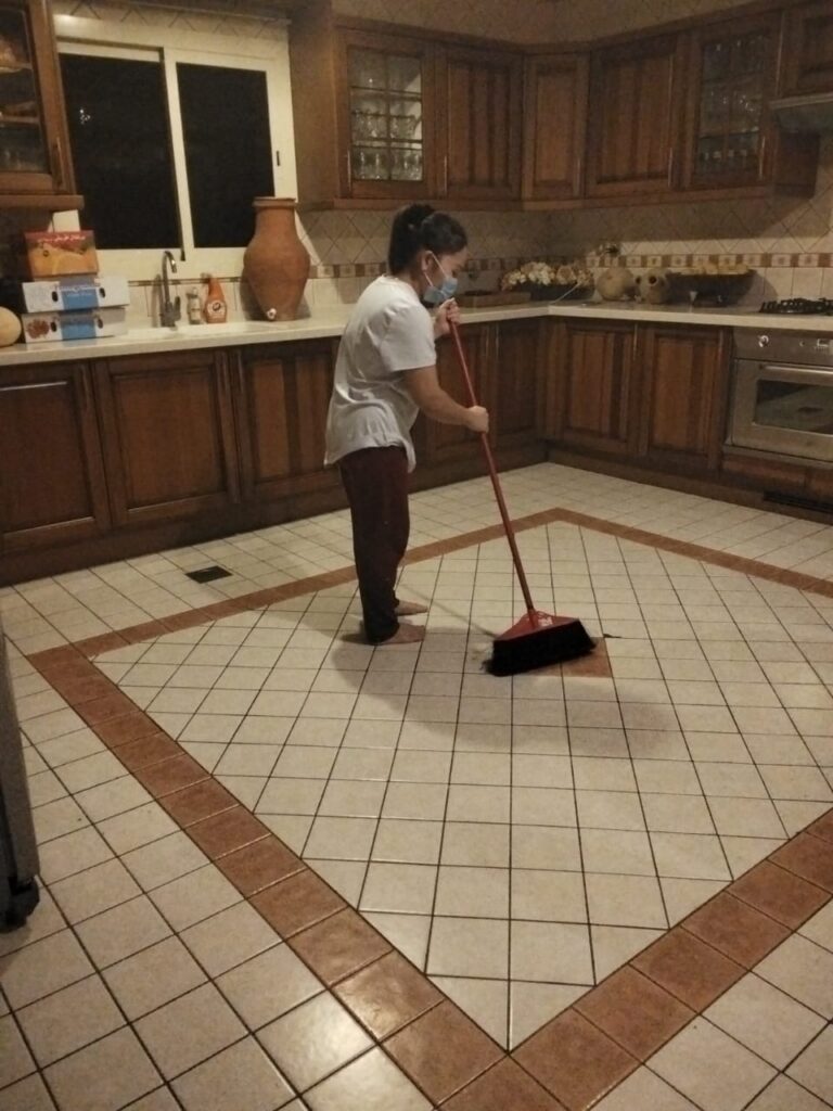إزالة الغبار من الأسطح، الأثاث، الإنارة، كنس ومسح جميع الأرضيات، وتعقيم دورات المياه بالكامل